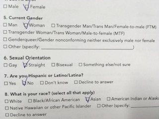 一方、ニューヨークでは、生まれた時の性と現在認識している性が異なっている人がいることも、性的指向が人さまざまであるということも、広く認識されています。そもそも、生まれ育った国、人種、母語が異なる人間が共存している社会なので、「常識が1つではない」のです。上記の Current Gender に対しての回答項目を見るだけでも、いろいろな性自認で生きている人が可視化されていることを実感します。バラエティに富んだ回答に加えてさらに “Other”(その他)の項目があることは、少数派が受け入れられる社会であることを示しているようにも思います。
